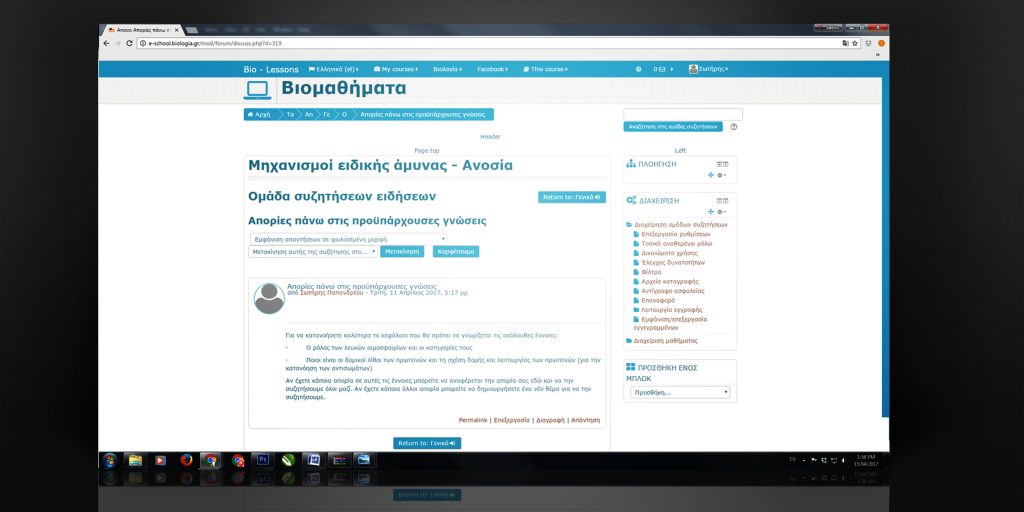 Η περίπτωση του e-μαθήματος «Μηχανισμοί ειδικής άμυνας – Ανοσία»