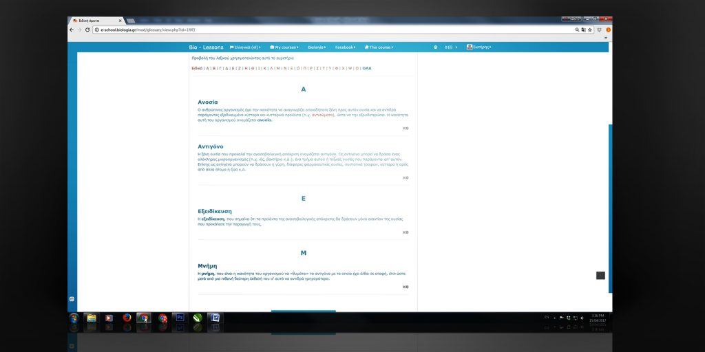 Στα πλαίσια του μαθήματος Εκπαιδευτική Τεχνολογία – Πολυμέσα στη Διδασκαλία της Βιολογίας του μεταπτυχιακού προγράμματος σπουδών “Διδακτική της Βιολογίας” του τμήματος Βιολογίας του πανεπιστημίου Αθηνών δημιουργήσαμε ένα e-μάθημα για την διδασκαλία μίας ενότητας της βιολογίας.