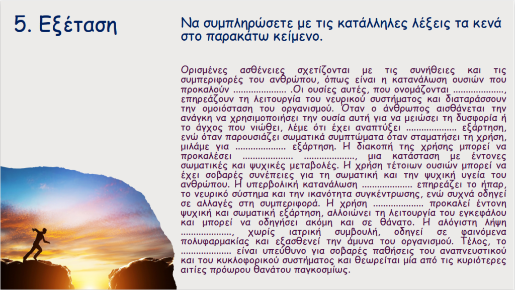 Η φάση αυτή είναι ιδιαίτερα σημαντική για το συγκεκριμένο θέμα, καθώς βοηθά τους μαθητές να εφαρμόσουν όσα έμαθαν σε πραγματικές καταστάσεις και να αναστοχαστούν πάνω στις προσωπικές τους επιλογές.