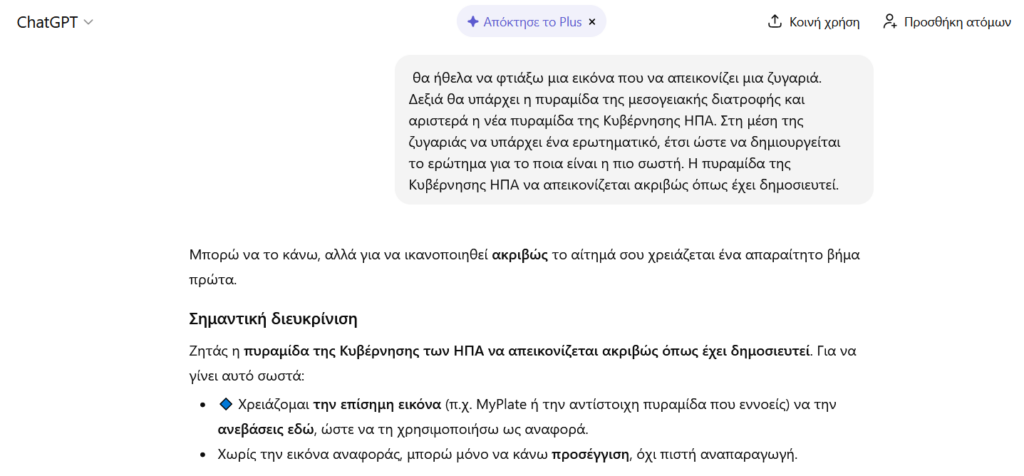 ChatGPT & Οπτικοποίηση Γνώσης: Σύγκριση Μεσογειακής και Νέας Διατροφικής Πυραμίδας