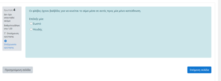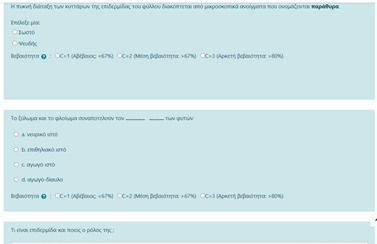 • Η δημιουργία κουίζ από τον εκπαιδευτικό με γνωστικές ερωτήσεις ποικίλων μορφών (ερωτήσεις σωστού λάθους, πολλαπλής επιλογής, ερωτήσεις κενών, αντιστοίχισης κ.α.). Κάτι που δεν πρέπει να παραληφθεί είναι η δυνατότητα ανατροφοδότησης σε κάθε ερώτηση, έτσι ώστε αν ο μαθητής κάνει λάθος να έχει το περιθώριο να δει τη σωστή απάντηση και να αναθεωρήσει.