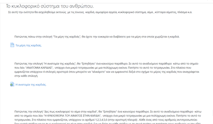 6. Για την τρίτη ενότητα που ήταν πολύ μεγαλύτερη γνωστικά (Το κυκλοφορικό σύστημα) , πρόσθεσα πολλές πηγές πληροφόρησης που αναφέρονταν σε πολλά επιμέρους θέματα (αιμοφόρα αγγεία, αίμα και συστατικά αίματος, το κυκλοφορικό σύστημα, παράγοντες που συνδέονται με τη λειτουργία του κυκλοφορικού συστήματος και επομένως με την υγεία του ανθρώπου).
