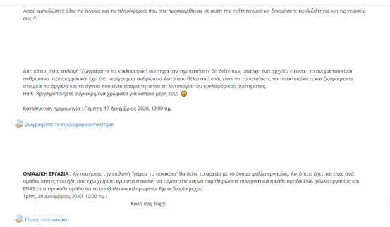 ***Κάτι που δεν πρέπει με τίποτα να παραληφθεί είναι πως το περιεχόμενο από τη στιγμή που απευθύνεται σε μαθητές θα πρέπει να έχει τις κατάλληλες οδηγίες και ξεκάθαρα και εύληπτα βήματα για να επιτελούνται οι δραστηριότητες αυτούς χωρίς δυσφορία. Αυτή τη δυνατότητα παράθεσης οδηγιών, την προσφέρει το Moodle με την ονομασία «ταμπέλες».