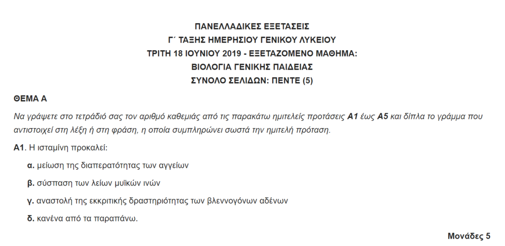 Η δική μου συνεισφορά στον κόσμο του Wiki σχετίζεται με τα θέματα των πανελληνίων εξετάσεων της Γ΄ τάξης ημερήσιου γενικού λυκείου που δόθηκαν την Τρίτη 18 Ιουνίου το 2019 στο μάθημα Βιολογίας γενικής παιδείας.