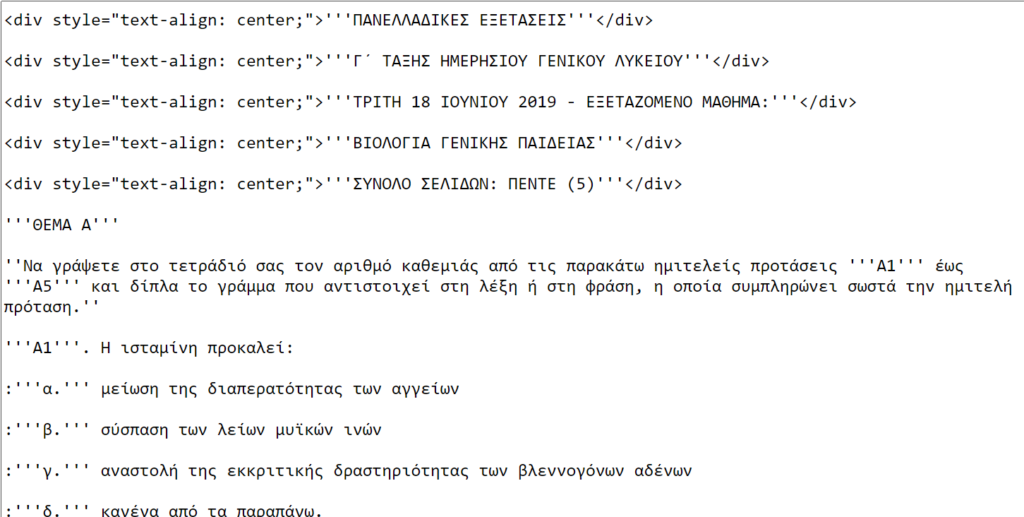 Πιο αναλυτικά δείτε ένα απόσπασμα της πρώτης σελίδας που είχα να μεταφέρω πως μεταφράζεται σε κώδικα του Wiki: