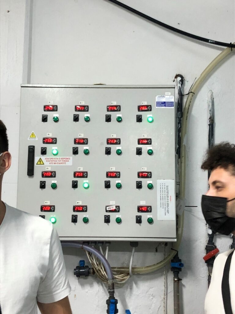 Εικόνα 15: Δεξαμενές εκκόλαψης και Εικόνα 16: Πίνακας ελέγχου των θερμοκρασιών.