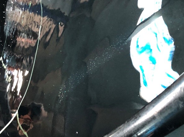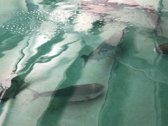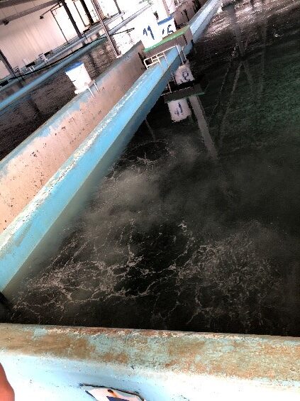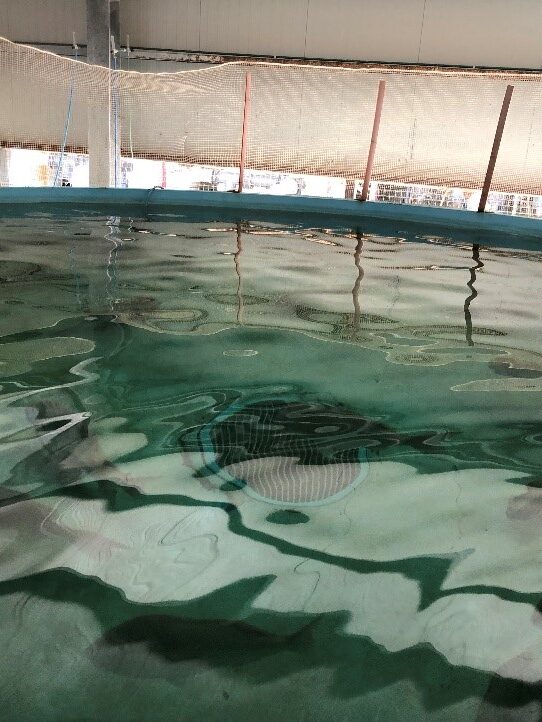 Εικόνα 25: Οξυγόνωση του νερού στις δεξαμενές πάχυνσης. Επίσης, η τροφή ελέγχεται με σένσορα που βρίσκεται εντός του νερού προκειμένου να μη γίνεται σπατάλη τροφής που δε θα καταναλωθεί.