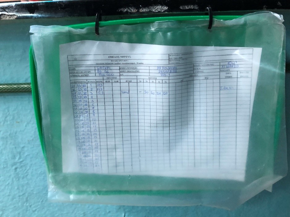 Εικόνα 5: Πρώτη ημέρα τροφή σε φαγκρί και η καταγραφή της τροφοληψίας στον πίνακα της εικόνας 6α.