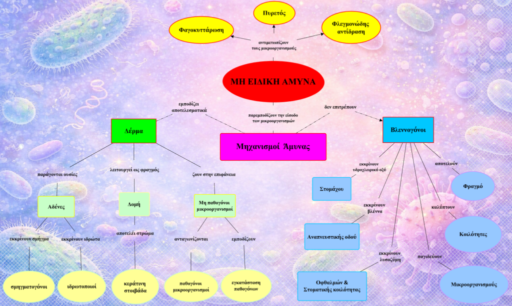Ο ανθρώπινος οργανισμός βρίσκεται καθημερινά εκτεθειμένος σε πλήθος παθογόνων μικροοργανισμών, όπως βακτήρια, ιοί και μύκητες, οι οποίοι μπορούν να απειλήσουν την ομαλή λειτουργία του. Για την αντιμετώπιση αυτών των κινδύνων έχει αναπτύξει ένα πολύπλοκο και αποτελεσματικό σύστημα άμυνας, το οποίο περιλαμβάνει τη μη ειδική και την ειδική ανοσία. Η μη ειδική άμυνα αποτελεί την πρώτη γραμμή προστασίας και ενεργοποιείται άμεσα, ανεξάρτητα από το είδος του παθογόνου παράγοντα.