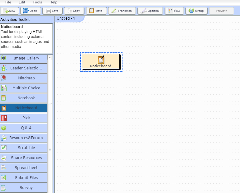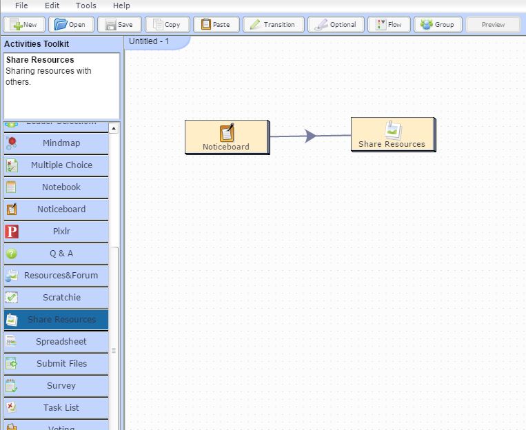 Το επόμενο βήμα θα είναι να επιλέξετε δραστηριότητες από τη λίστα που σας παρέχει η εφαρμογή (activities toolkit) και να επεξεργαστείτε τη κάθε δραστηριότητα ώστε να ικανοποιεί το σχέδιο μαθήματος.