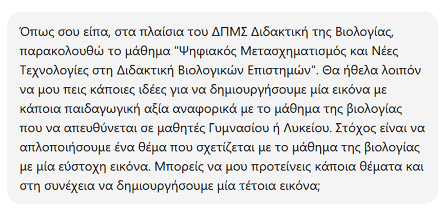 Αρχικά, εξήγησα στο εργαλείο το ζητούμενο με βάση τον Οδηγό για τη Δημιουργία Καλών Προτροπών (Prompts).